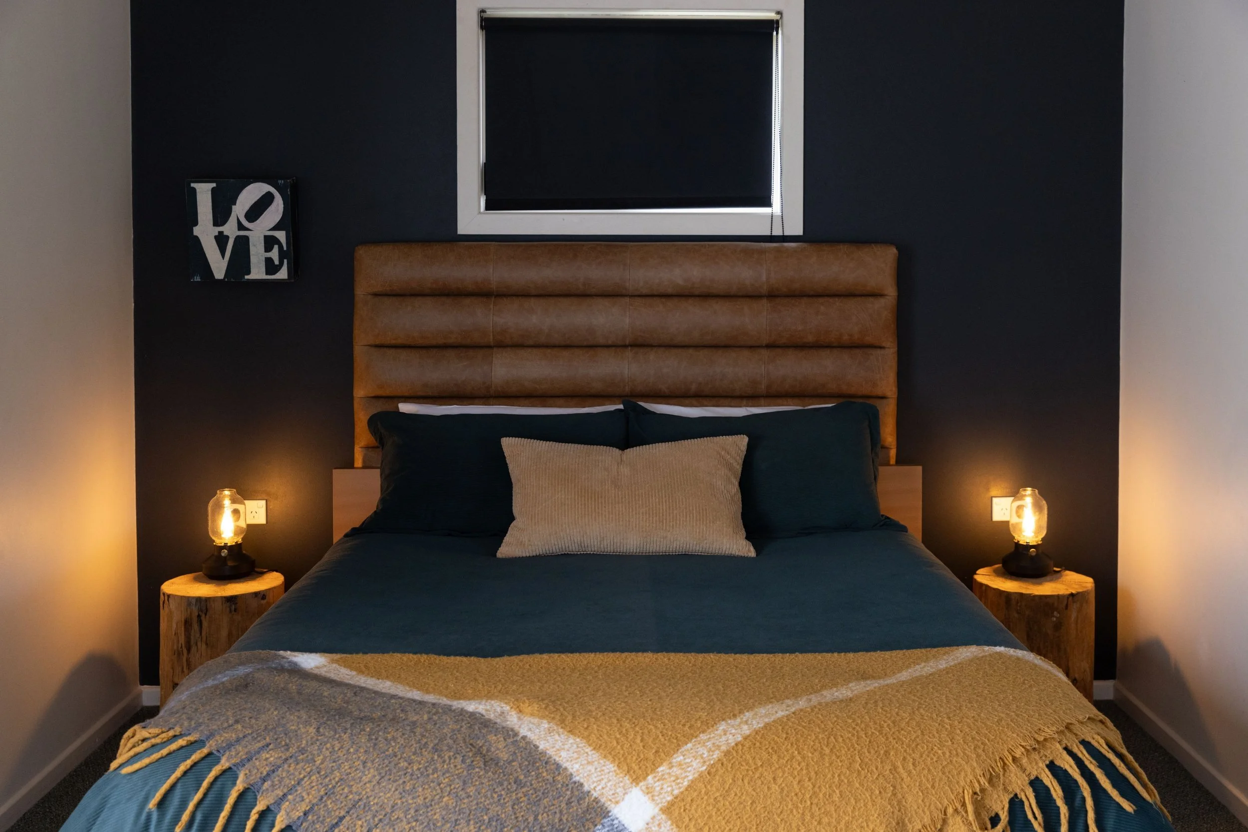 Inside, the contemporary open plan living features a spacious Queen bedroom, living room with sofa bed, cosy wood heater, TV, CD, DVD and a generous supply of books, magazines, music, movies and games. The kitchen/dining area is spacious and well appointed with a tasteful balance of furnishings and artwork. The bathroom has a large shower, laundry tub and hand basin with wall to wall mirror. The well equipped kitchen offers a pantry of complimentary goods for your convenience including pasta, rice, oil, teas and freshly ground coffee.